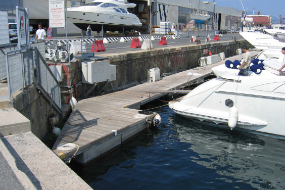 Approdo per imbarcazioni da 6m a 12m di lunghezza, composto da una parte galleggiante e una parte fissa. L'accessibilità è garantita da una passerella con portale.
