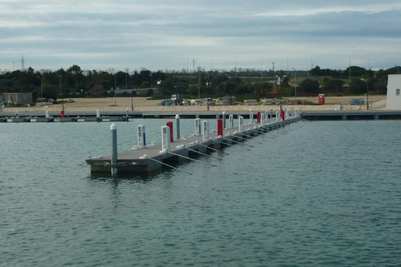 Pontili fissi sottobanchina da 317x1.50 metri su mensole in acciaio inghisate alla banchina e mq 312 di piattaforme fisse su pali. Pontili galleggianti.