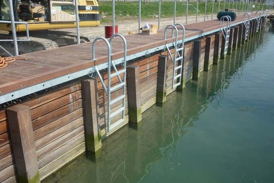 Approdo per imbarcazioni di lunghezza fino a 15 metri con altezza regolabile su pali. Dimensioni 13.5x1.50 metri.